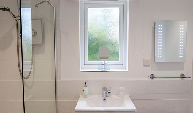 View MoreThe En-suite has all the usual facilities you would expect. Generously sized walk-in shower, sink with storage space below, toilet, illuminated wall mirror with shaver point and towel radiator.